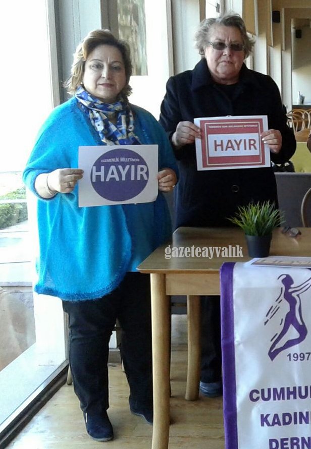 Cumhuriyet Kadınları Derneği Ayvalık Şubesi, Anayasa değişikliği be başkanlık sistemine karşı ‘Hayır’ dedi.