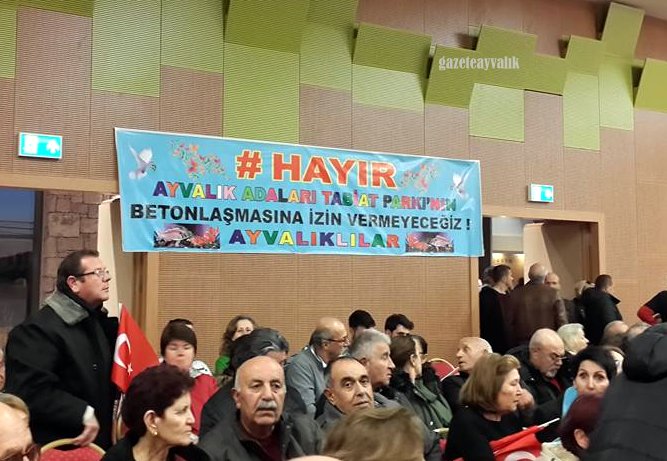 Ayvalık’taki 45 doğal sit alanının yeniden değerlendirildiği çalışmanın ilçedeki yankıları sürerken gerek açılan imza kampanyası gerekse toplantılarla, bölgenin biyolojik zenginliği ve doğal güzelliğini yok edebileceği belirtilen çalışmaya karşı mücadele başlatıldı. Mücadeleye katılan Çevre Koruma ve Ayvalık’ı Güzelleştirme Derneği, Küçükköy Kültür Merkezi’nde 17 Şubat akşamı gerçekleştirilen Uğur Dündar ile Halk Arenası programının canlı yayını sırasında ‘Hayır, Ayvalık Adaları Tabiat Parkının betonlaşmasına izin vermeyeceğiz, Ayvalıklılar’ yazılı pankart açtı. Dernek Başkanı Havva Taylan, “Büyükşehir Belediyesinin verdiği garantiye güvenemeyiz. Biz Ayvalık halkı olarak mücadeleye hazırlanacağız” dedi.