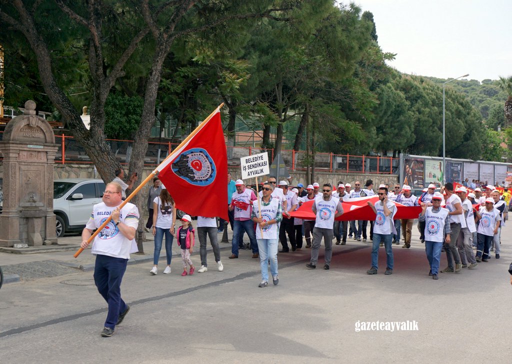 1 Mayıs’ın işçi sınıfının mücadele ederek elde ettiği kazanımlarıyla, kararlılığıyla, dayanışmasıyla anlamlı kıldığı bir gün olduğunu belirten Belediye-İş Sendikası Ayvalık Temsilcilik Başkanı İsmail Yeniköylü, “Bizler alın teriyle hara lokma yemeden yaşam mücadelesi verenleriz. Bizler, tüm insanların refah ve huzur içinde kardeşçe yaşadığı bir dünyayı hayal ediyoruz. Ekmeğin hakça bölüşümünü. Biz emekçiler, dünyanın farklı ülkelerinde yaşasak bile benzer sorunlarla karşı karşıyayız. Sorunlarımız ortak ama mücadele azmimiz ve kararlılığımız da ortak. Bizim kaderimiz ortak. Biz, insanca yaşamak istiyoruz. Taşeronda, güvencesiz, kuralsız çalışmak, ucuz iş gücü olmak, iş kazalarında can vermek istemiyoruz. Özgürlüğün siyasal ve ekonomik demokrasiyle sağlanmasını talep ediyoruz. İşin, ekmeğin olmadığı bir yerde sosyal barışın da olmayacağını biliyoruz. Emeğin baş tacı edildiği, her alanda demokrasinin geçerli olduğu bir düzen istiyoruz. Kıdem tazminatımıza el uzatılmasına, haksız yere işten çıkarmalara, açlığa ve sefalete mahkum bırakılmaya, sendikasızlaştırmaya, güvencesizleştirmeye, çocuklarımızın geleceğinin çalınmasına ve topyekun hayatımızın karartılmasına karşı alanlardayız” dedi.