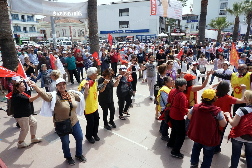 1 Mayıs İşçi Bayramı Ayvalık’ta Cumhuriyet Meydanı’nda halaylar çekilerek kutlandı. Emek, demokrasi ve özgürlük mesajları verilen kutlamada hep birlikte şarkılar söylendi.
