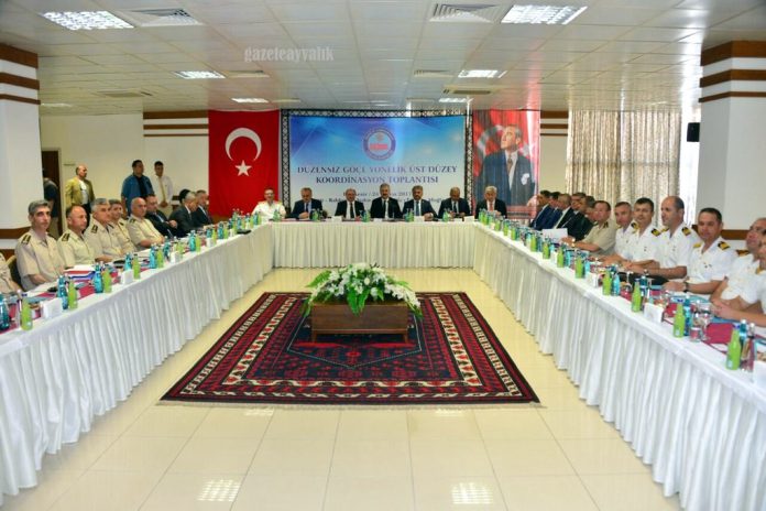 İzmir Valiliği Düzensiz Göçe yönelik üst düzey koordinasyon toplantısını Ayvalık’ta yaptı. Cunda Uygulama Oteli’nde gerçekleştirilen toplantı saat 11.00’de başladı. İzmir Valisi Erol Ayyıldız başkanlığındaki toplantıya Balıkesir Valisi Ersin Yazıcı ev sahipliği yaptı.