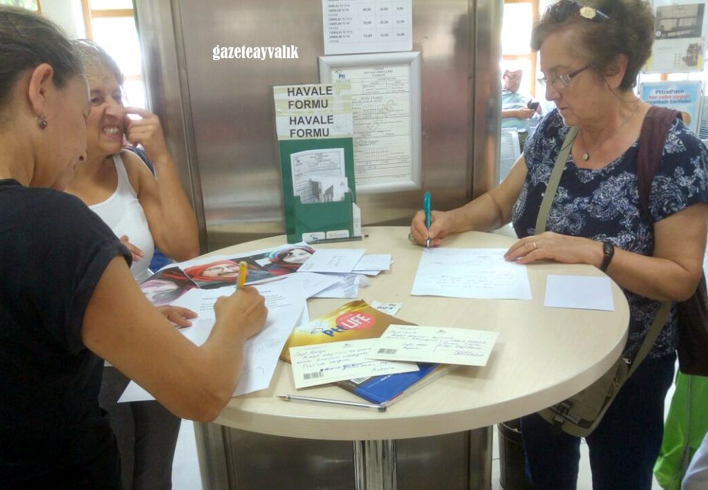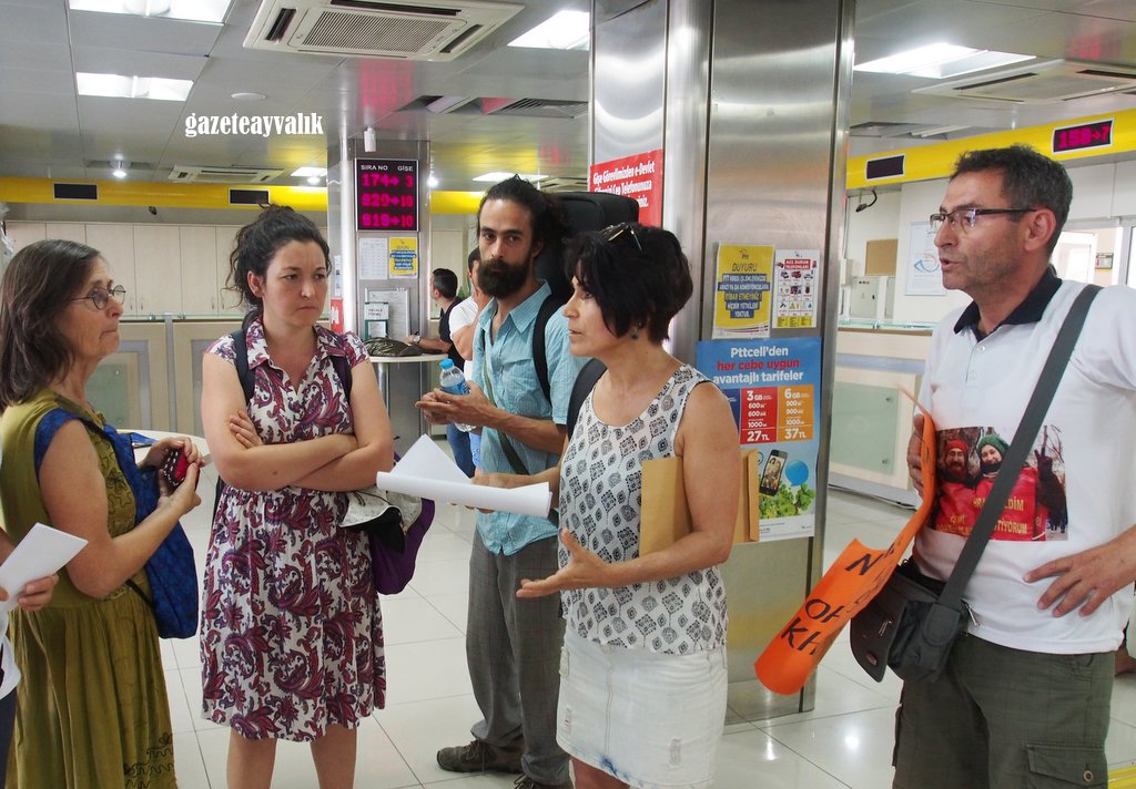Gülmen ile Özakça’ya destek için 14 Haziran Çarşamba günü saat 19.00’da Gezi Parkında toplanan Ayvalık Emek ve Demokrasi Güçleri, özgürlüğün simgesi balonlarla, Gülmen ve Özakça’nın özgürlüğüne ve işlerine kavuşması taleplerini iletti. Balonlu desteğin bir gün sonrasında PTT önünde buluşan Ayvalık Emek ve Demokrasi Güçleri, üzerinde Ayvalık fotoğrafları olan kartpostalları ve ‘Biz Ayvalık’ta yaşayan vicdani değerlerini kaybetmemiş insanlar olarak haklı ve meşru mücadelenizi destekliyoruz’ yazan mektuplar gönderdi. Ayvalık Emek ve Demokrasi Güçleri Adalet Bakanı Bekir Bozdağ’a da mektup yazarak, Gülmen ve Özakça’nın özgürlüklerine ve işlerine kavuşması çağrısını yineledi.