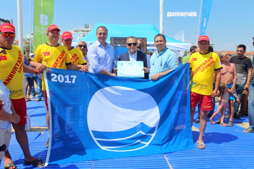 3 yat ve Marina ile birlikte 13 Mavi Bayrak almaya hak kazanan Ayvalık’ta, Balıkesir Büyükşehir Belediyesi Oteller önü Sarımsaklı Halk Plajına verilen Mavi Bayrak, 15 Haziran Perşembe günü saat 14.30’da düzenlenen törenle çekildi. Sarımsaklı Plajında 2017 Mavi Bayrak törenine Balıkesir Büyükşehir Belediye Başkanı Ahmet Edip Uğur, Ayvalık Belediye Başkanı Rahmi Gençer, Balıkesir Büyükşehir Belediyesi Su Kanalizasyon İdaresi Müdürü Mustafa Bayram, Türkiye Eğitim Çevre Vakfı Kuzey Ege Mavi Bayrak Koordinatörü Doğan Karataş, Balıkesir Büyükşehir Belediyesi daire başkanları ve müdürlerinin de aralarında bulunduğu çok sayıda kişi katıldı.