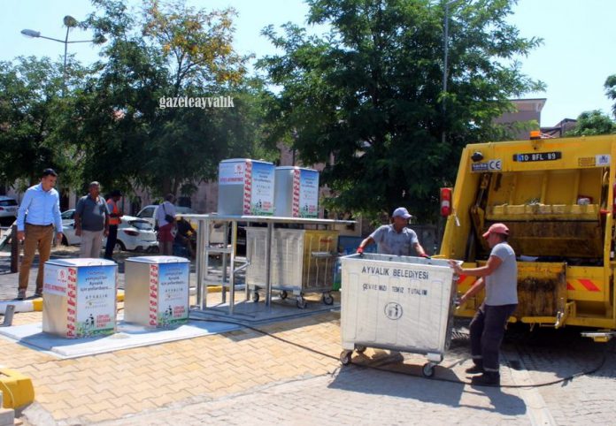Ayvalık Belediyesi, çöp ve atıkların toplanması sırasında atık yönetimi ve transferini kolaylaştırma amacıyla yer altı çöp konteynır sistemine geçti. İlk etapta ilçenin 3 farklı noktasına, 24 konteynır, 2’şer ve 4’er şekilde yerleştirildi. Her biri 1,2 ton kapasiteli 24 adet yer altı çöp konteynırının yaklaşık 10 gün önce başlayan kurulum çalışmaları 22 Haziran günü tamamlandı. Çevre görüntüsünü bozmayan ve hatta kentsel düzenlemeye katkıda bulunan yeraltı çöp toplama ünitelerinin insan sağlığı için ve önemli olduğunu ifade eden Belediye Temizlik İşleri Müdürü Nejdet Güngör, Cunda’ya 10 adet, Ali Çetinkaya Mahallesi’ne 6 adet, 150 Evler Mahallesine 8 adet konteynır yerleştirildiğini belirtti. Kent merkezinde 3-4 noktada denendiği ancak su, elektrik- telefon hatları nedeniyle uygulanamadığı öğrenildi.