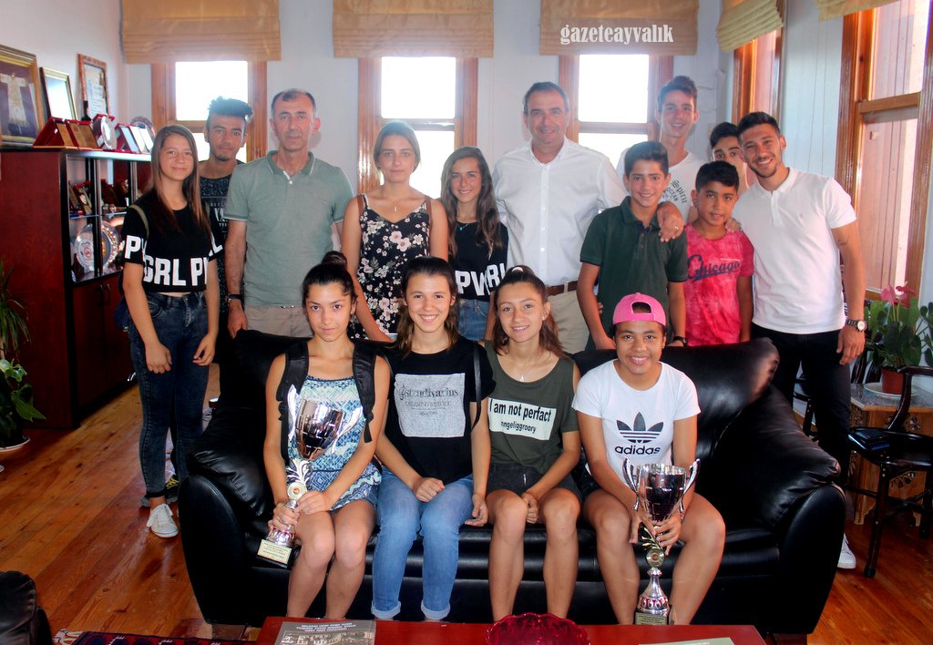 Ankara ve Samsun’da iki ayaklı düzenlenen Yürüyüş Ligi’nden 4 kupayla dönen Ayvalık Atletizm Kulübü sporcularının U16 erkeklerle takım ikincisi, Büyük kadınlarla takım ikincisi, U20 genç kadınlarda takım ikincisi, U16 kızlar takım üçüncüsü olduğu belirtildi. Bireysellerde genç Bayan kategorisinde Gürcan Kardelen Erdinç, Büyük bayanlar kategorisinde ise 2012 Londra Olimpiyatlara katılan Sporcu Semiha Mutlu’nun da derece kazandığı belirtildi. 19 ülkeden 100’ü aşkın sporcunun katılımıyla gerçekleşen Avrupa Amatörler Satranç Şampiyonası’nda 6.5 puanla bitiren ve averajla Avrupa 2.si olarak Ayvalık’ı gururlandıran Orkun Efe Alumert ‘te Atletler gibi başarı sevincini Belediye Başkanı Rahmi Gençer ile paylaştı. Sporculara hediye çeki vererek teşekkür eden belediye başkanı, önemli olanın hayata sporla başlamak olduğunu başarının ikinci planda olduğunu söyledi.