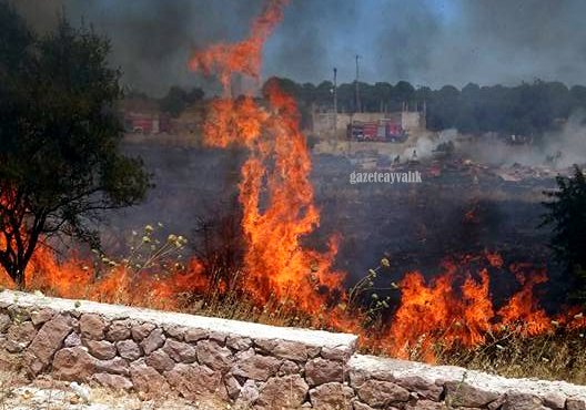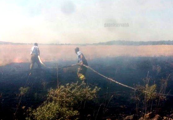 Ayvalık’ta 17 Temmuz günü 19 dakika arayla iki arazi yangını çıktı.