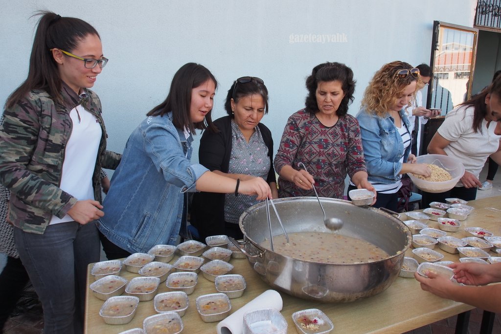 Ayvalık Anadolu Lisesi (AYAL) 6. Geleneksel aşure hayrını Pazartesi günü okul bahçesinde düzenledi.