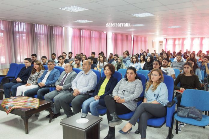 Balıkesir Üniversitesi Ayvalık Meslek Yüksek Okulu öğrencilerine kenti tanıtmak için düzenlenen konferansta, Emekli Tarih Öğretmeni Şerif Bacık, Osmanlı ve Cumhuriyet yıllarında Ayvalık ve eğitim konusunda bilgi verdi.