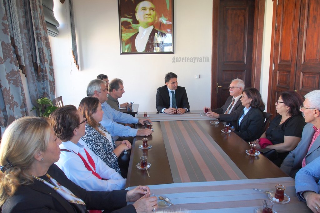 CHP Ayvalık İlçe Başkanı Ahmet Toker ve yönetim kurulu üyeleri Kaymakam Gökhan Görgülüaslan’ı makamında ziyaret etti. Kaymakamı genç ve dinamik bulduklarını ifade eden CHP ilçe Başkanı Toker ve yönetim kurulu üyeleri, Kaymakam Görgülüaslan’dan memleketi Karabük ve Türkiye’de görev yaptığı iller hakkında bilgi aldılar. Türkiye’nin farklı yerlerinde görev yapmaktan mutluluk duyduğunu ifade eden Kaymakam Görgülüaslan, “Keyifle görev yaptım. İnsanımı, coğrafyasını tanıdım. Bu ülke zengin bir ülke” dedi. Ziyarette Ayvalık’ın sorunları ve bu sorunların el birliği ile çözülmesi gündeme geldi.