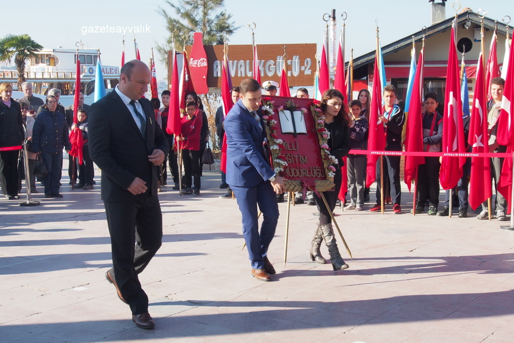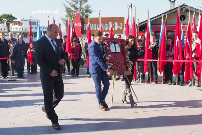 Cumhuriyet meydanında saat 11.00’de başlayan törene, Ayvalık Belediyesi Başkan Yardımcısı Gökay Bacan, İlçe Milli Eğitim Müdürü Güner Bahadır, şube müdürleri Ali Tümen ve Mete Erbatur ile okul müdürleri, Demokratik kitle örgütü temsilcileri ve vatandaşlar katıldı. Saygı duruşu ve İstiklal Marşı’yla başlayan tören, çelenk sunumu ve vatandaşların Ulu Önder Mustafa Kemal Atatürk’ün huzuruna çiçek sunumuyla son buldu.