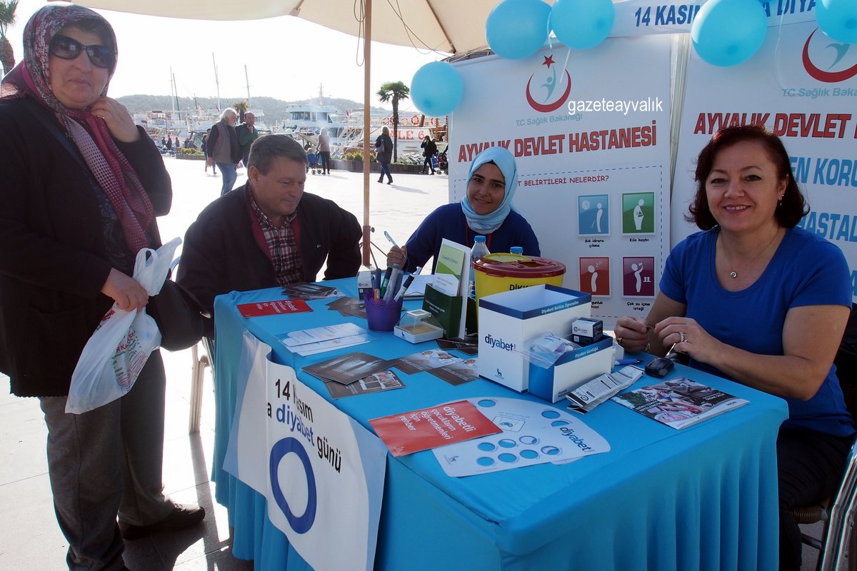 Dünya Diyabet gününde diyabet farkındalığını arttırıcı etkinliğin düzenlediği Ayvalık’ta vatandaşların ücretsiz kan şekeri ölçümü yapıldı.