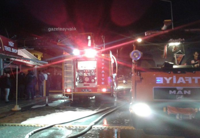 Alınan bilgiye göre; 30 Kasım akşamı saat 22.30’da Suat Akın Çarşısında başlayan yangına Ayvalık İtfaiye Grup Amirliği 5 araç , 9 personel ile müdahale etti. Yangının 23.30 civarında söndürüldüğü öğrenildi. İçinde tentelerle ayrılmış 15 ayrı sergi yeri olan çarşıda kış sezonuna girilmesi nedeniyle sadece 2 serginin açık olduğu ve bu sergilerde satışa sunulan eşyaların yandığı, binada yangın nedeniyle 300 bin liralık maddi hasar meydana geldiği bildirildi. Yangının çıkış nedeni ile ilgili incelemeler devam ederken İtfaiye Amirliğinin elektrik kontağı ihtimali üzerinde durduğu öğrenildi.