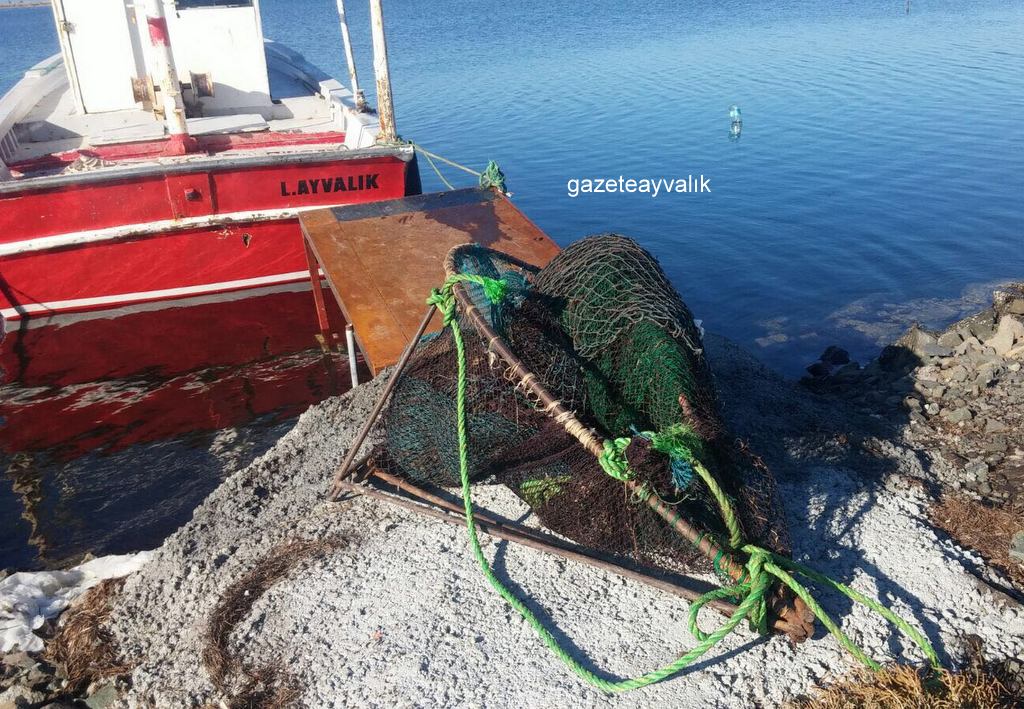 Ayvalık’ta, avlanması yasak olan deniz patlıcanı avcılığında kullanılan av araçlarına Gıda Tarım Hayvancılık İlçe Müdürlüğü Su Ürünleri ekiplerince el konuldu.