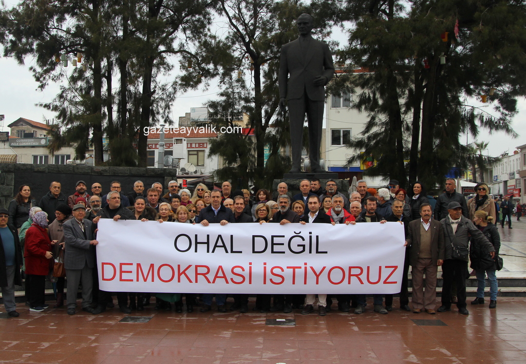 CHP Ayvalık İlçe Başkanı Hüseyin Şalmanlı tarafından yapılan açıklamada, “Ülkemiz on sekiz aydan bu yana OHAL rejimi ile yönetilmektedir. 15 Temmuz 2016’da gerçekleşen hain darbe girişimi ardından 20 Temmuz’da ilan edilen OHAL, milli iradeye, demokrasiye, insan haklarına ve özgürlüklere yönelik bir karşı darbe halini almıştır”