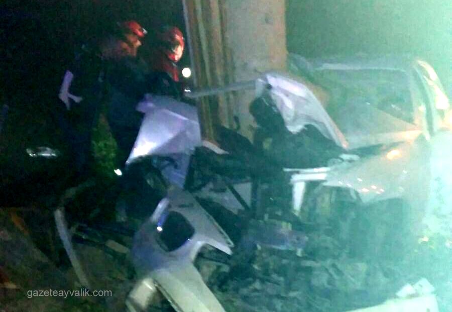 BETON DİREĞE ÇARPAN ARAÇTA 3 GENÇ HAYATINI KAYBETTİ