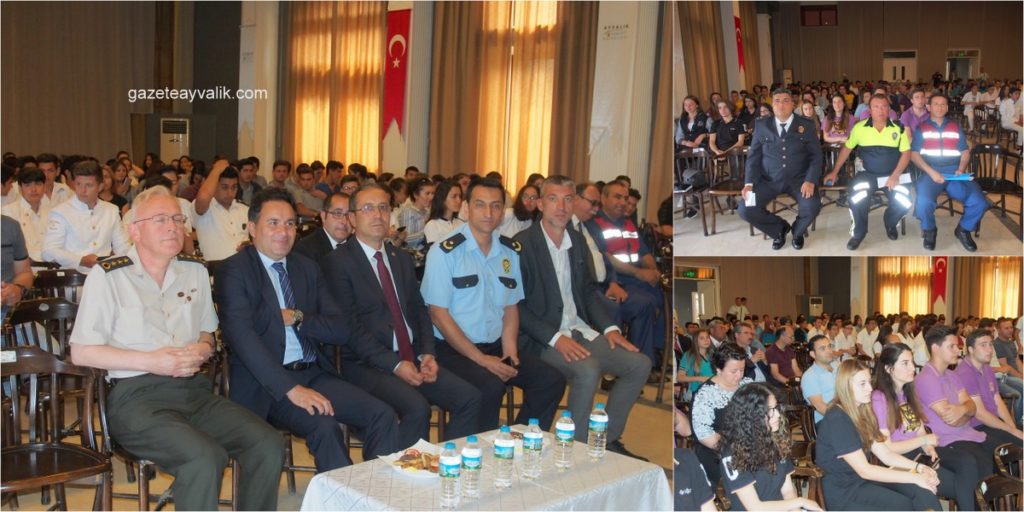 Ayvalık’ta ‘Karayolları Trafik Güvenliği Haftası’ dolayısıyla düzenlenen programda trafik güvenliğinin önemine ilişkin sunumlar izlendi, hazırlanan stantlarda trafik işaret ve kuralları ile kask kullanımı konusunda bilgilendirme yapıldı.