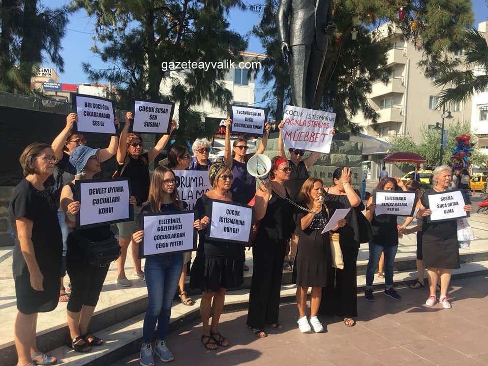 Çocuk susar sen susma, istismara sessiz kalma, ses ol, Devlet uyuma çocukları koru, Çocuk İstismarına dur de, Tecavüzcüleri değil çocukları koru, susma suça ortak olma, bir çocuğun çıkaramadığı ses ol’ yazılı dövizlerle Cumhuriyet Meydanı’nda toplanan Ayvalık’ta yaşayan kadınlara vatandaşlar da destek verdi.