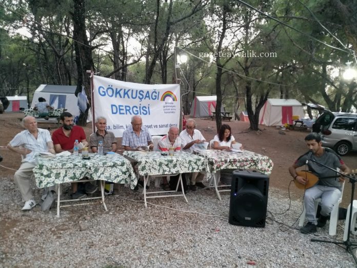 Küçükköy Mahallesi Şeytan Sofrası yolu üzerindeki bir mesire yerinde düzenlenen etkinlikte, 1 Eylül Dünya Barış Günü’nde Gökkuşağı Dergisinin 5’nci yılına gireceğini belirten dergi sahibi Burhan Gümüş, “Çevre, kadın,  emek mücadelesi ve doğadan yana açık açık tarafız. Toplumcu bir bakış açımız var. 3 ayda 1 yayınlanan dergimizin Ayvalık’taki ilk etkinliğinde Ayvalık, Körfez ve İstanbul’dan şair arkadaşlarımızı bir araya getirdik. Sadece okurların katkılarıyla ayakta duran bir dergi Gökkuşağı. Alanlardayız masa başı bir dergi değiliz” dedi.