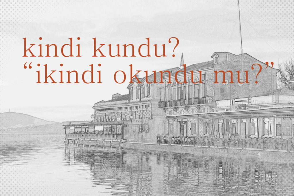 ‘Ayvalıkça’ başlığı altında 2014 yılında Zeytin Hasat Günleri için özel olarak hazırladığımız yayınımızda ilk kez paylaştığımız Ayvalık şivesini, mübadiller ve mübadil çocuklarıyla konuşup geliştirerek yayınlamaya devam ediyoruz. Bu okuduğunuz bilgilerin büyük bölümü ne yazık ki bugün için teorik olarak kalmış yöresel ağızdır. Ancak bazı seslenişleri Ayvalık sokaklarında hala duyma olasılığı vardır.