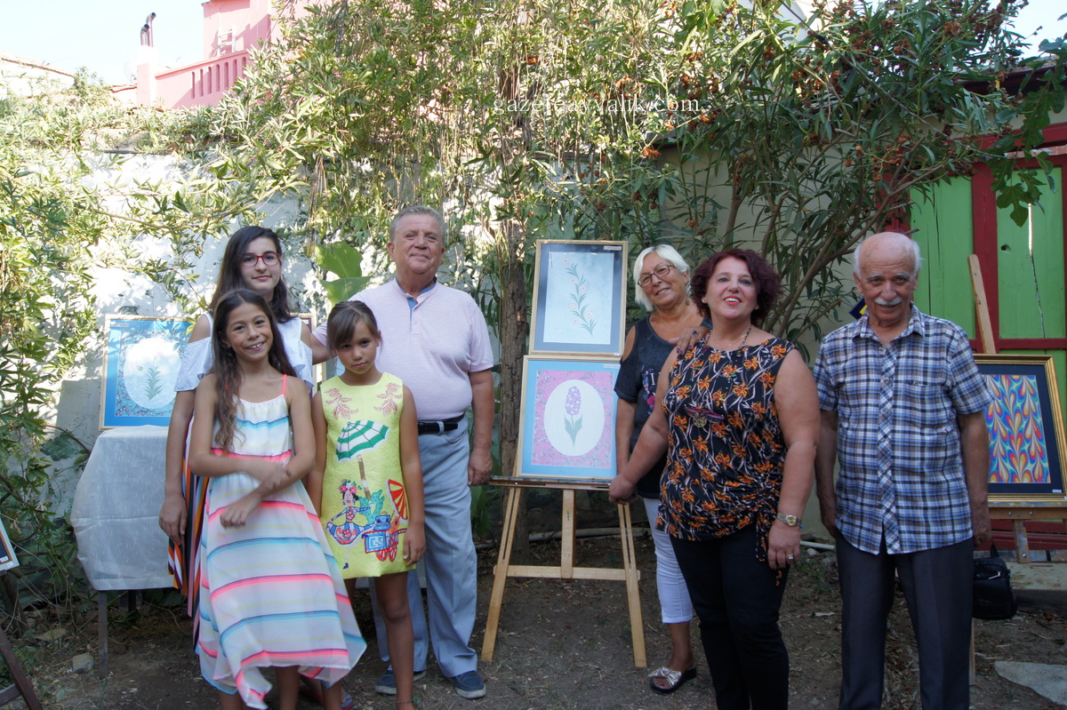 Ebru hocası Turgut Alp Can yönetiminde Temmuz-Eylül tarihleri arasındaki kursa katılan Melis Karel, Ayşe Bade Eşbeoğlu, Zeynep Gürman, Vildan Köken, Serap Yıldırım ve Naim Pehlivan’ın ebru çalışmaları ‘7’den 77’ye Ebru Sergisi’ ile Ayvalık’ta yaşayanların beğenisine sunuldu.
