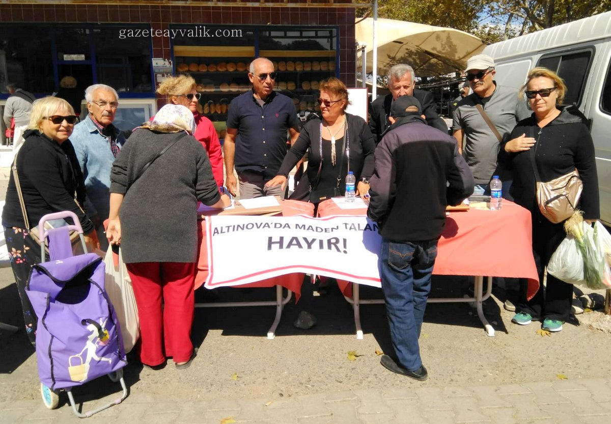 Ayvalık Kent Konseyi, Çevre Koruma ve Ayvalık’ı Güzelleştirme Derneği, Ayvalık Tabiat Derneği, Atatürkçü Düşünce Derneği, Altınova’dan sorumlu Ayvalık Belediye Başkan yardımcısı İbrahim Mühüraroğlu ve Altınova’daki sitelerin yöneticileri yaptığı toplantıda, ÇED süreci başlayan maden arama çalışmalarına karşı halkı bilgilendirme ve imza kampanyası başlatma kararı aldı.