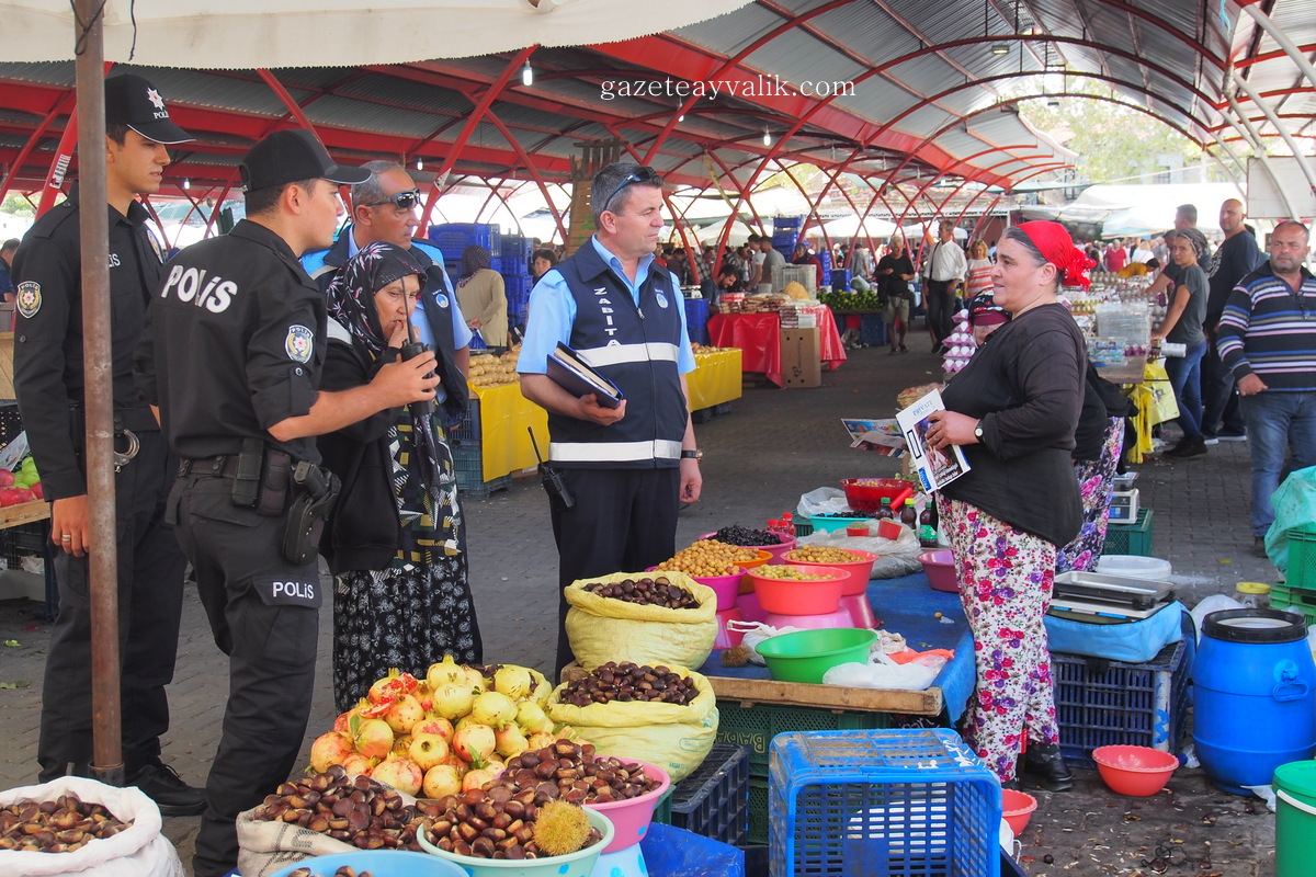 Ayvalık Belediye Zabıta ekipleri, Perşembe günü kurulan semt pazarında tüketicilerin korunması ve farklı fiyat uygulamasının önüne geçilmesi için etiket denetimi yaptı.