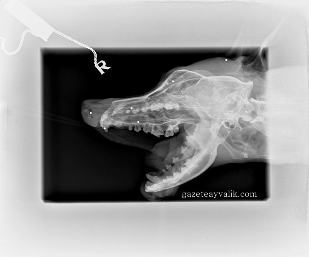 Balıkesir’in Ayvalık ilçesinde sokaklarda yaşarken, Almanya’da yaşayan bir aile tarafından sahiplenilip Almanya’ya götürülen Collie-Terrier cinsi köpeğin, diş bakımı için gittiği veterinerde çekilen röntgeninde, başında 7 saçma tespit edildi. Köpeği sahiplenen Nurferi Bellisan Ortmann, “Bir insanın ne kadar korkak ve sinsi olması gerekir ki; bir masumun yüzüne ateş etsin” dedi.