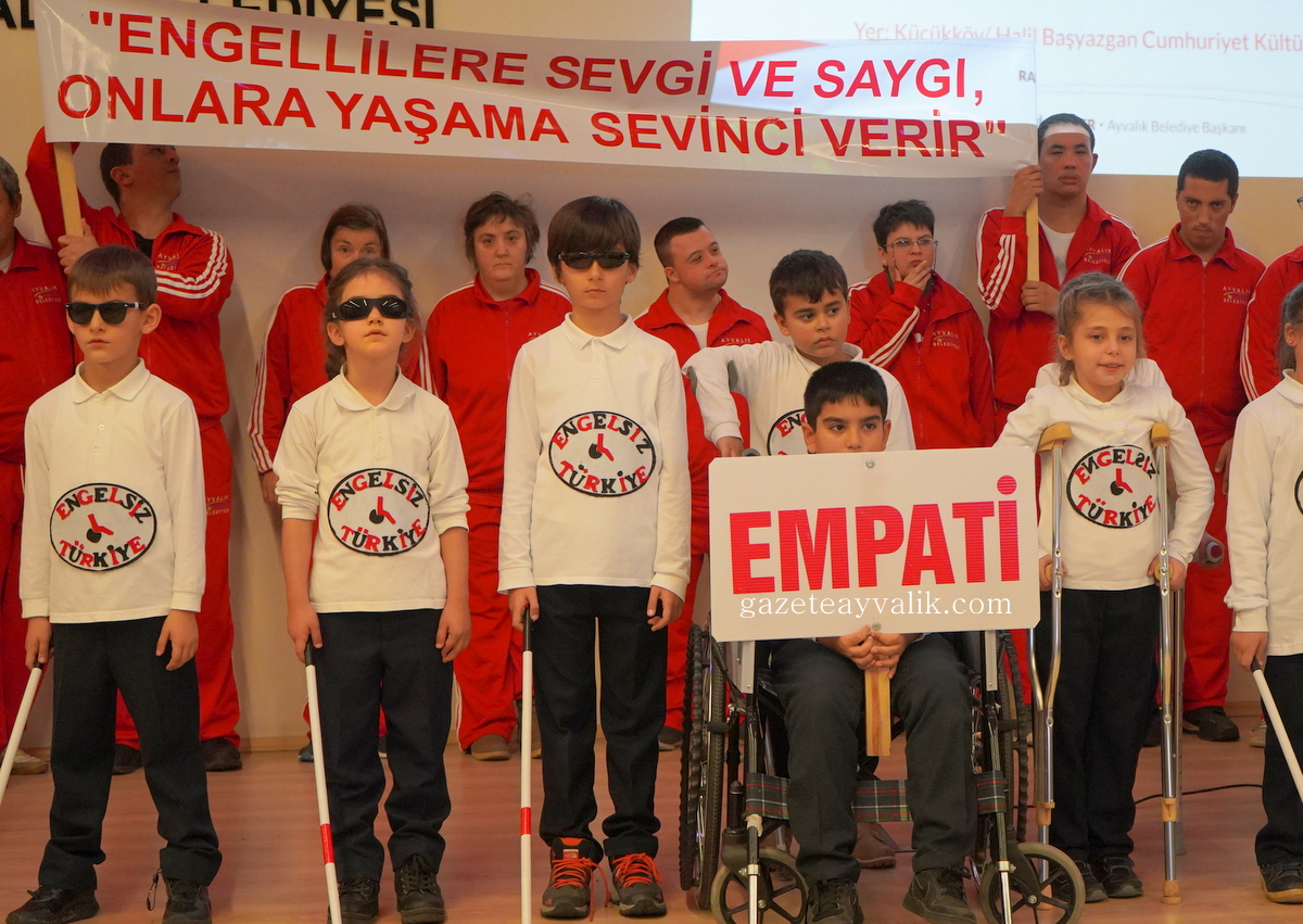 Ayvalık Belediyesi, 3 Aralık Dünya Engelliler Günü nedeniyle, Küçükköy’de bulunan Ayvalık Belediyesi Halil Başyazgan Küçükköy Cumhuriyet Kültür Merkezi’nde tören düzenledi. Ayvalık Belediye Başkanı Rahmi Gençer, her şeyin yolunun sevgiden geçtiğini belirtirken, empati yapmanın önemine değinen Sakarya İlkokulu öğrencileri, ‘Aramızda engel yok’ mesajını verdi.