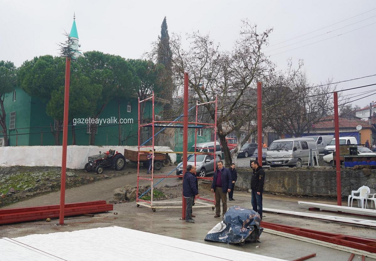 yemekhane, düğün salonu ve toplu eğlencelerde kullanılmak istenen yerde ilk hayır yemeğini Ayvalık Belediyesi olarak vermek istediklerini söyledi. 330 metre kare kapalı alan içerisindeki ortak alanı inşaatı bir ay içerisinde tamamlanması planlanıyor. Akçapınar’da çok amaçlı kullanılması planlanan sosyal alanın yapımına geçtiğimiz hafta başlanmıştı. 270 metre karelik alanda duvar yapımı çalışmaları da pazartesi gününden itibaren başlayacak. Geçtiğimiz dört yıl içerisinde her köye mescit tuvalet ve düzenli olarak yol yapım hizmeti sunduklarını belirten Başkan Gençer, ” Geçtiğimiz yıl Beşiktepe, Çakmak, Yeniköy’de çok amaçlı sosyal alanlarımızı köy halkımızın hizmetine sunmuştuk. Yol yapım çalışmalarımızda üç köyde birden devam ediyor. Şimdi Tıfıllar, Akçapınar ve Çamoba köylerimize yeni sosyal alanlar yapıyoruz. Köylerimizin hemen hemen hepsine yepyeni hizmetler sunduk. Bütünşehir yasasından önce her hizmetini kendi yapan kırsal kesimdeki vatandaşlarımızın 4 yıldır ihtiyaçlarını imkanlarımız doğrultusunda bir bir yerine getiriyoruz. Köylerimizin çok hizmete ihtiyacı var. Yaz- kış , hafta içi-hafta sonu demeden yanlarında olmaya devam edeceğiz. Bir ay sonunda hazır olacak sosyal alanlarımızda Ayvalık Belediyesi olarak ilk hayırı biz yapmak istiyoruz. ‘’dedi.
