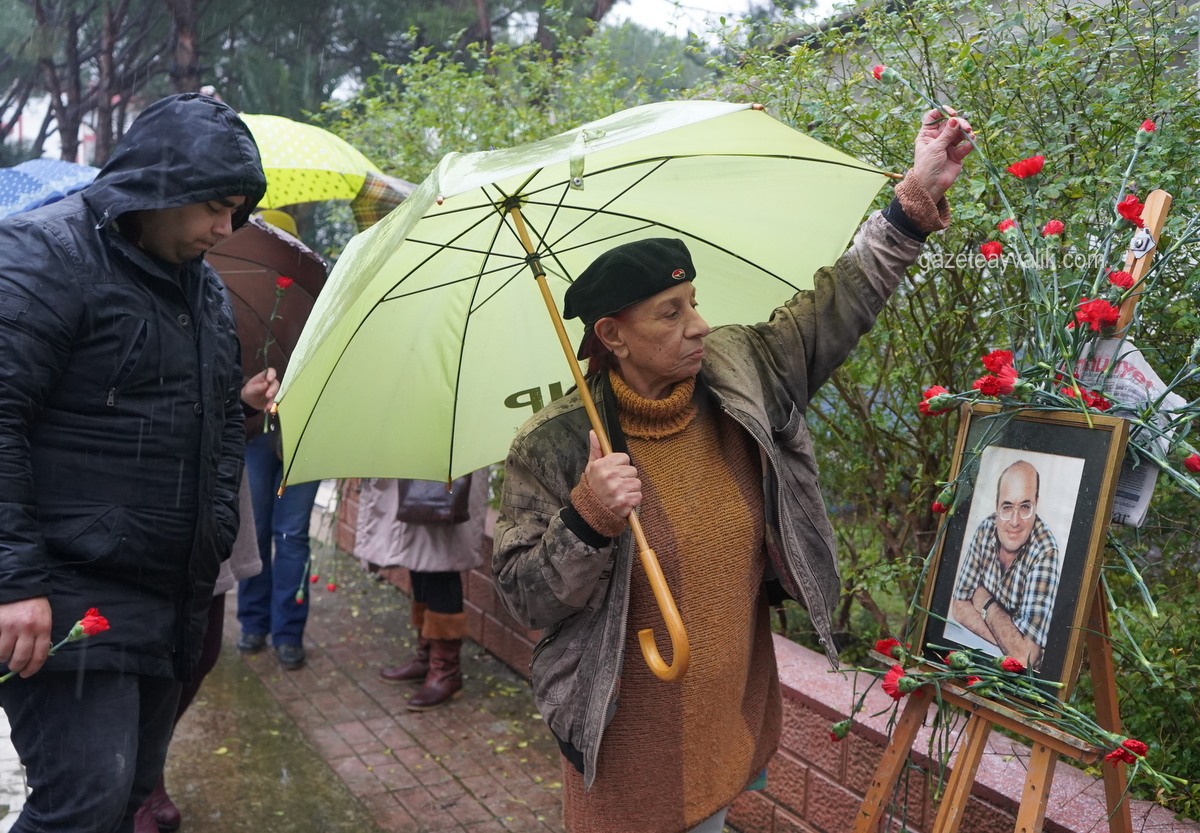Mumcu’nun evinin önüne yerleştirilen fotoğrafının üzerine kırmızı karanfiller bırakılmasıyla anma töreni sona erdi.
