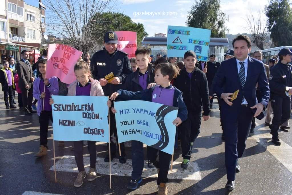 Buna göre araç sürücüleri, trafik polisi veya trafik ışığı bulunmayan ancak trafik işareti veya levhalarıyla belirlenmiş kavşak giriş ve çıkışlarına yaya veya okul geçitlerine yaklaşırken yavaşlamak zorunda. Sürücülerin buralardan geçen veya geçmek üzere bulunan yaya varsa ilk geçiş hakkını yayaya vermesi de zorunlu kılındı. Yurt genelinde başlatılan kampanya kapsamında Ayvalık’ta uygulama yapıldı. Kaymakam Gökhan Görgülüarslan yönetiminde Eski Garaj önünde yapılan etkinliğe, İlçe Emniyet Müdürlüğü Trafik Şube ekipleri, daire amirlerinin yanı sıra 15 Eylül İlkokulu idaresi ve öğrencileri de katıldı. Ellerinde, ‘Sevdikleriniz için yayalara yol verin’ ‘Öncelik yayanın’ yazan dövizlerle yol kenarında duran öğrenciler, sürücülere mesaj verdi. Kaymakam Gökhan Görgülüarslan, ‘Yaya Öncelikli Trafik’ algısı oluşturmaya yönelik ülke genelinde farkındalık faaliyetleri yapılması için yıl boyu devam edecek bir kampanya yapılacağını belirtti.