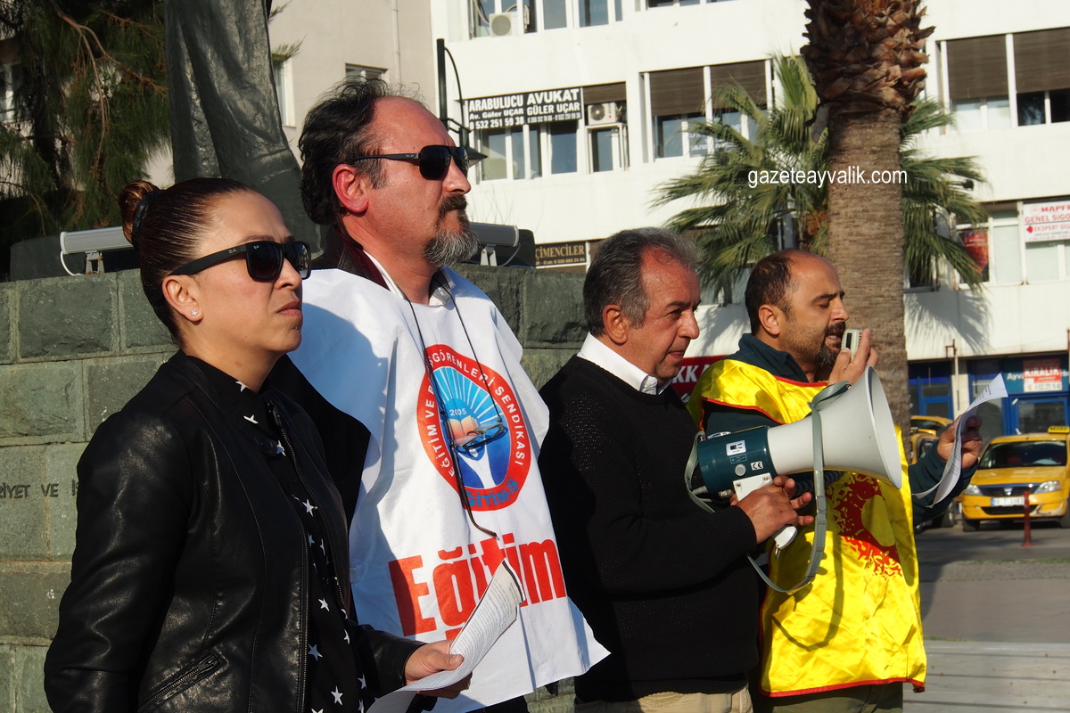 Gebze’de, Atatürk Anadolu Lisesinde görev yapan Necmettin Kuyucu’nun hayatını kaybetmesiyle sonuçlanan bıçaklı saldırıyı lanetleyen sendika temsilcileri, Ayvalık Cumhuriyet Meydanında 5 Nisan Cuma günü saat 18.00’de açıklama yaptı. Sendikaların açıklamasına ilçedeki çeşitli sivil toplum kuruluşlarının temsilcileri, eğitimciler ve vatandaşlar destek verdi.