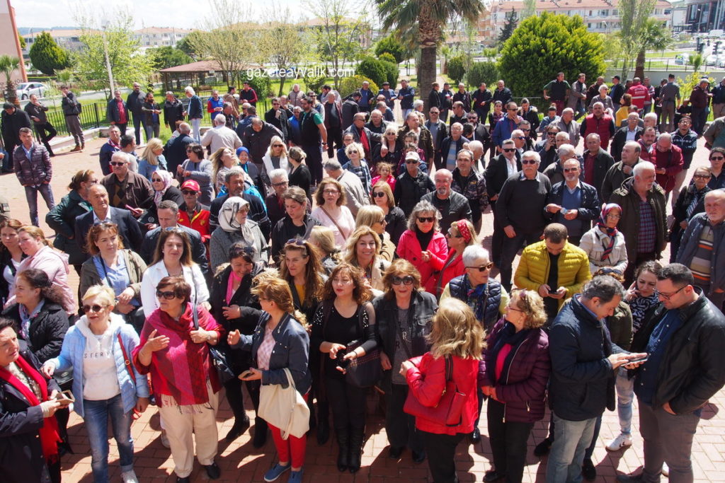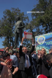 Mazbatasını aldıktan sonra Cumhuriyet Meydanı’na gelen Ayvalık Belediye Başkanı Mesut Ergin, Atatürk anıtına çelenk sundu. Saygı duruşu ve İstiklal Marşının okunmasının ardından açıklamada bulunan Ergin, mazbatayı halka gösterirken “Bu sizin emeğiniz, sizin eseriniz” dedi. Eşi tarafından yakasına Atatürk rozeti takılan Ergin, halka teşekkür ederek, “Seçim çalışması başladı bir kenetlendik ve bugüne kadar geldik. Hepinizden Allah razı olsun. Bu başarıda emeği geçen herkese, başta kadınlarımız ve gençlerimiz olmak üzere herkese teşekkür ediyorum. Bu seçimin galibi sen, ben, o, bu, şu değil Ayvalık halkıdır. Bunu herkes böyle bilsin. Bundan sonra ben de Ayvalık’ta herkesin belediye başkanıyım. Bütün belediye meclis üyelerimiz de inanıyorum ki Ayvalık’ın belediye meclis üyeleri olacaktır. Çünkü biz onlarla beraber Ayvalık’ta birçok şeye imza atmak istiyoruz. Hep beraber bu yolu yürüyeceğiz. Benim hiçbir tereddüdüm yok. Hep beraber bu işi başaracağız. Hep dedik ki bizim göğsümüzdeki Atatürk kalbimizde, yüreğimizle bütünleşmiştir dedik. Atatürk rozetimizi hiç çıkarmayacağız, nasıl beynimizde, nasıl ruhumuzdaysa dedik. Şimdi rozeti yerine koyuyoruz. Bu hiçbir zaman yakamızdan çıkmayacak. Çünkü Ayvalık Cumhuriyet değerlerine, Atatürk ilke ve devrimlerine inanmış bir şehirdir. Her zaman da bizlerle böyle olacak, böyle kalacaktır. Gelecek nesillere de böyle taşınacaktır” dedi.