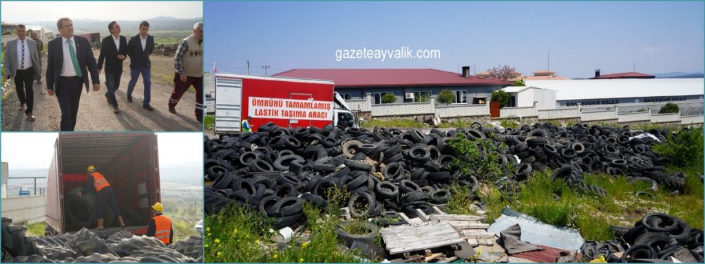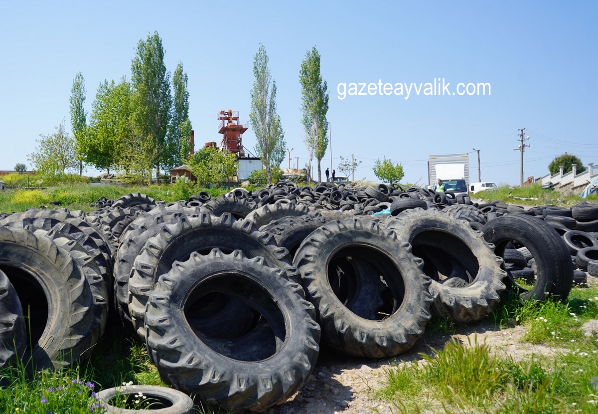 Ayvalık Asfaltlama tesisi yakınında, 10 yıldan bu yana toplanan ömrünü tamamlamış lastikler, çevre ve ülke ekonomisine geri kazanılması amacıyla geri dönüşüme gönderildi. Türkiye’de ilk kez tek kalemde 20 bin adet lastiğin geri dönüşüme verildiği öğrenildi.