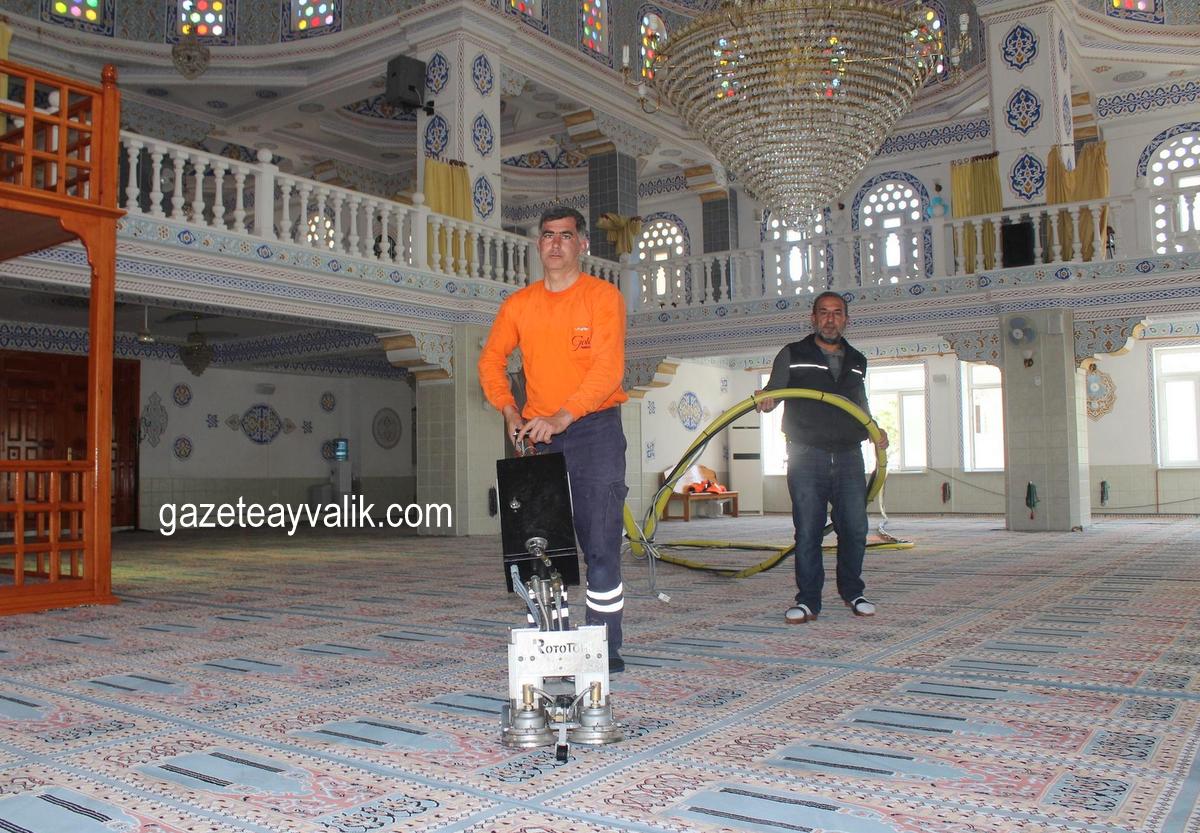 Ayvalık Belediyesi Temizlik İşleri Müdürlüğü, cami temizleme hizmetlerine kent merkezinden başlayıp kırsal mahalleler ile devam etti. 4 personelle gerçekleştirilen çalışmalar, önceki gün tamamlandı. Temizlik çalışmasında, vakumlu ve kurutmalı makinede, özel dezenfekte ilaçları kullanılarak cami halıları yıkandı.