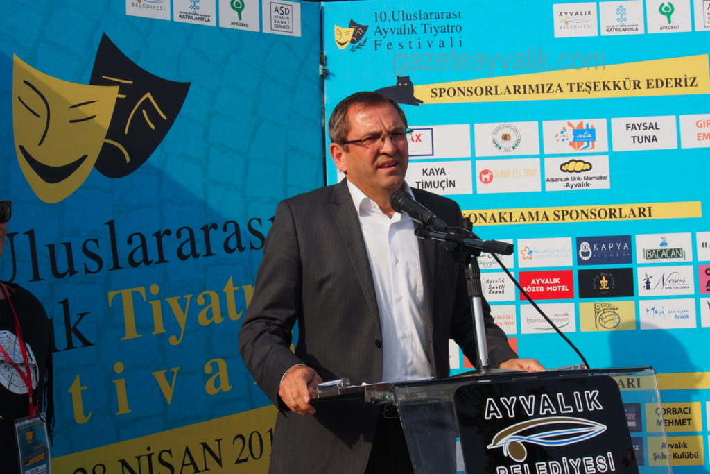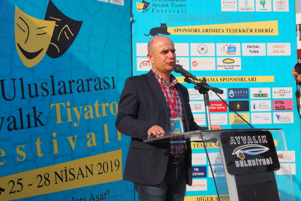 Festival Yürütme Kurulu adına konuşan Sadi Mastar, festivale destek verenlere teşekkür ederek “Bu festivalin tohumları bir grup tiyatro gönüllüsü tarafından daha Ayvalık’ta sahne yokken atılmıştı. Festival büyüyerek, adım adım gelişerek bugünlere kadar ulaştı. 10’ncusunda yeni bir sıçrama içerisindeyiz. Geçen sene de uluslararası konuklarımız vardı. Bu sene de aramızdalar. Festivalimizi 10’ncu yılında rüştünü ispat etti ve uluslararası olarak yoluna devam edecek. Bunun için çok mutlu ve gururluyuz. Bu festivalin özünde herkesin emeği ve katkısı var. Bir farklı yönü de bu ” dedi.