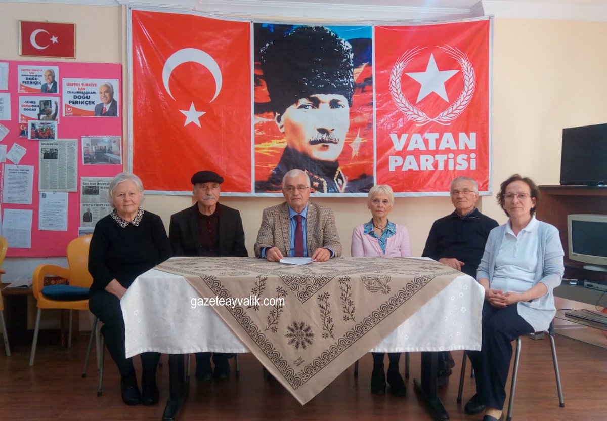 Parti binasında, miting öncesi bir açıklama yapan Vatan Partisi İl Başkanı Osman Aydın Şahin, “Ayvalık ilçemizde yapılacak olan 1 Mayıs yürüyüş ve mitingi için tertip komitesinde yer alan Belediye-İş Sendikamızın Balıkesir Şube Başkanı ve Ayvalık Belediyesi Sendika temsilcisi ile 26 Nisan günü görüştük. Saygı duruşu ve İstiklal Marşı ile başlayacak olan mitingde alan Türk bayrakları ile gelincik tarlasına dönecekti. Bu konuda mutabık kaldık. Ancak 29 Nisan günü saat 19.30’da Belediye-İş Temsilcisi beni arayarak, tertip komitesi, Vatan Partisinin 1 Mayıs mitingine katılmaması yönünde karar alındığını beyan etmiştir. 1 Mayıs 2019 emek bayramı, Türk Milletinin Amerikan emperyalizmi ile savaştığı günlerde, bölücülükle kol kola girerek kutlanamaz. Milli Savunma Bakanlığı dün yaptığı açıklamayla TSK’nın harbe hazırlık tatbikatlarının takvimini Türk Milletine duyurmuştur. Emekçilerin kıdem tazminatlarına göz dikildiği, iş yerlerinin krize bağlı olarak kapandığı, çalışanların işlerini kaybettiği günleri yaşıyoruz. Bu şartlar altında kutlanan 1 Mayıs Emekçi gününde bölücülerle birlik olmayı tercih edenlerin tarihi sorumlulukları olacaktır. Türk-İş Genel Başkanı Atalay’ın ve Belediye-İş Genel Başkanı Sayın Yurdakul’un hassasiyetlerini biliyoruz. Ayvalık ilçemizde yaşananlara sessiz kalmayacağını düşünüyoruz” dedi.