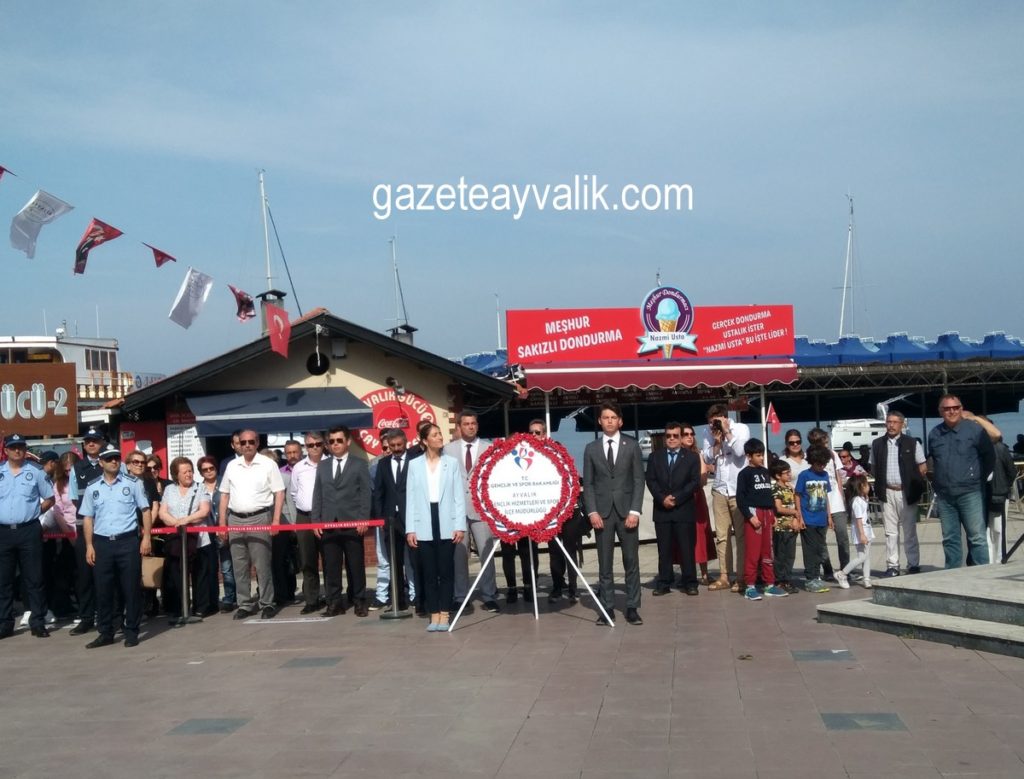 Ayvalık’ta 19 Mayıs Atatürk’ü Anma Gençlik ve Spor Bayramı için ilk tören Cumhuriyet Meydanı’nda saat 09.30’da başladı. İlçe Gençlik Hizmetler ve Spor Müdürlüğü adına çelenk sunumunu Müdür vekili Emre Baydoğan yaptı.
