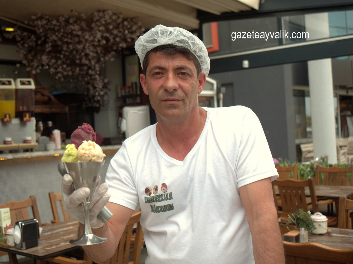 Sakızlı ve karadutlu dondurma ile başlayıp incirlisinden bademlisine türlü çeşidi ile Ayvalık’ta yaz günlerinin vazgeçilmez lezzeti olan dondurma, Nihat Uzunay’ın çabasıyla yeni çeşitlere kavuşuyor. Dondurmaseverleri kendine bağlayan tahinli, hurmalı ve yanıksı dondurmaları ile beğeni toplayan dondurma ustası, dondurmada yeni lezzet arayışlarını sürdürüyor.