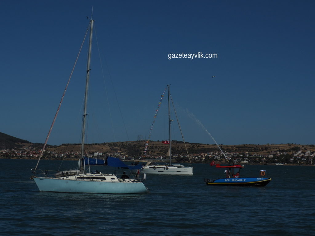 Türk Denizciliğinin en önemli atılımı Kabotaj Kanununun 93. Kabul yılı, Ayvalık’ta tören ve yarışmalarla kutlandı. Şehit denizciler için denize çelenk bırakılıp denizden Türk bayrağı çıkartılırken, yüzme yarışlarından çekişmeli yağlı direğe kadar hareketli geçen kutlamayı her yaştan Ayvalıklı ilgiyle izledi.