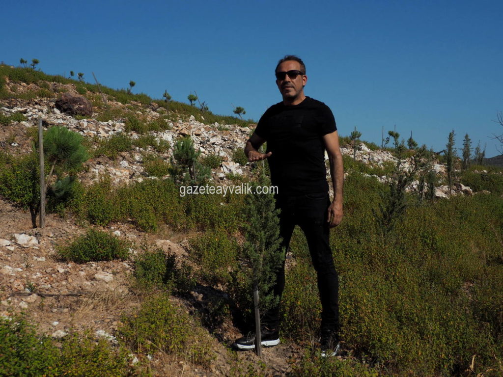 Bakan Eroğlu’nun sözlerini yazdığı, ‘Ayvalık Bizim’ şarkısını besteleyen ve bölgenin ağaçlandırma çalışmasına 2 bin kişilik AHBAP ekibi ile birlikte katılan sanatçı Haluk Levent, fidan dikiminden 1 yıl 6 ay sonra yine bölgedeydi.
