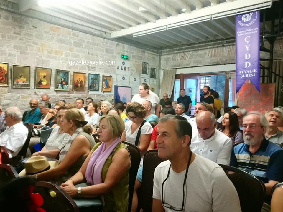 Sahillerinde demirlemiş izbandut denilen küçük yelkenli tekneleri, denize uzanan bir burnun ucunda bulunan yalnız bir yel değirmeni, müşteriler, aşçılar, garsonlar, kafe sahiplerinin doldurduğu masaları sokaklara taşan meyhaneleri ile Ayvalık’ın geçmişine yolculuk yaptıran söyleşi, ilçede ilk olması açısından da ilgi topladı.