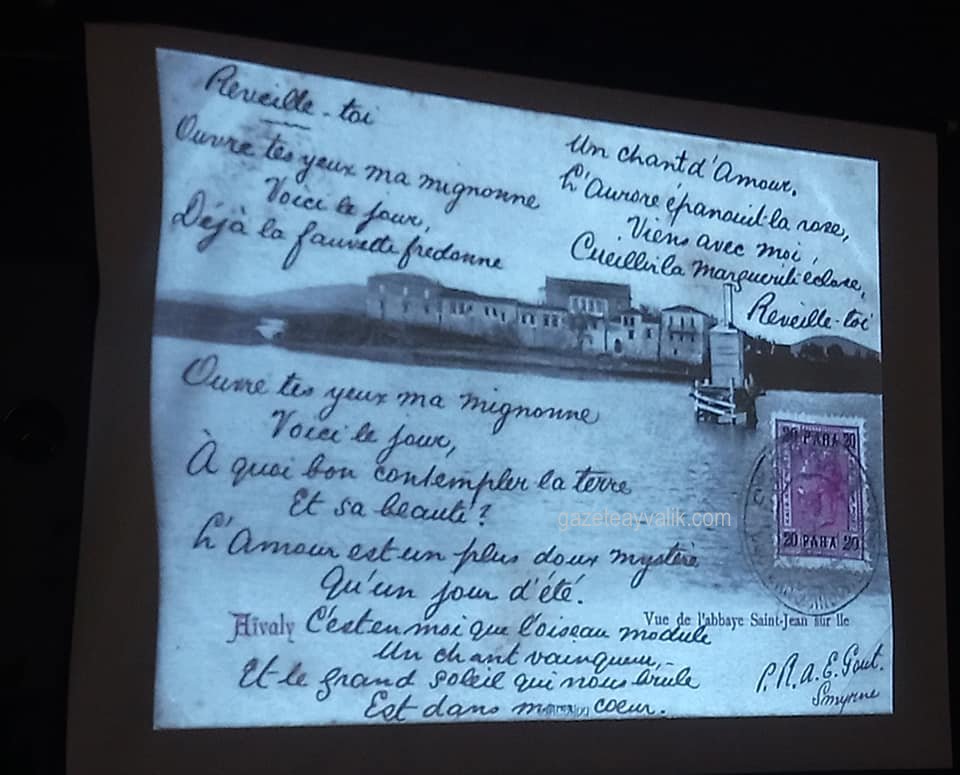 Aziz Nicolas Manastırından Paleo Bahçe Sokağı ve Meydanına, bir zamanlar tüm heybetiyle Ayvalık’ı izleyen Profiti İlias Kilisesi’nden Melekler Körfezine Ayvalık’ın tarihi mekânları ve doğal güzelliklerinin yer aldığı kartpostallar, bu kartpostallara yazılan notları aktaran Köken, bu mekânların günümüzdeki durumu üzerine de bilgi verdi.