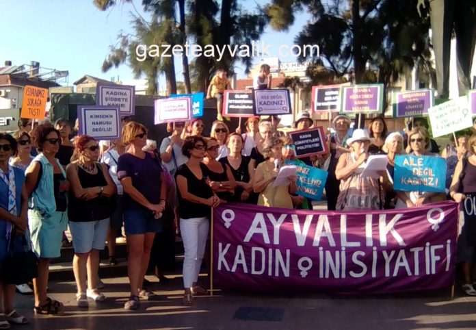Geçtiğimiz hafta Emine Bulut’un Kırıkkale’den yükselen ‘Ölmek istemiyorum’ çığlığına sessiz kalmayan ve kadına yönelik şiddete tepki gösteren Ayvalık Bağımsız Kadın İnisiyatifi, Ayvalık Cumhuriyet Meydanı’nda yaptığı açıklamada, kadın cinayetlerinin sona ermesini, 6284 No’lu yasa ve İstanbul sözleşmesinin uygulanmasını talep etti.