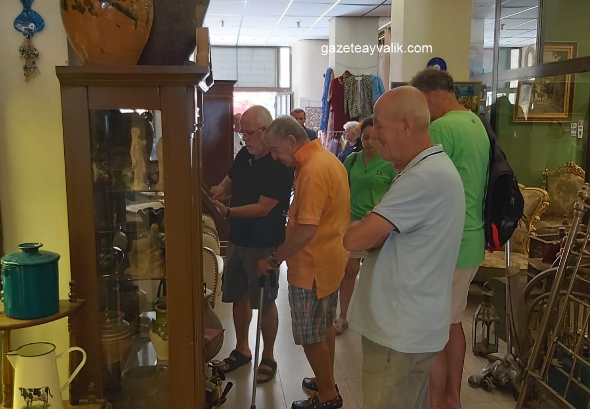 Sanayi makineleri ve farklı malzemelerle ilgilenen Rahmi Koç, Mustafa İşler’in sahibi olduğu Ayvalık eski zaman eşyaları dükkânı ve diğer dükkanları da gezerek Antikacılar Çarşısından ayrıldı.