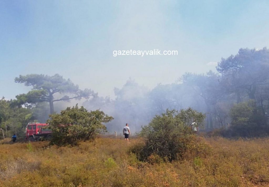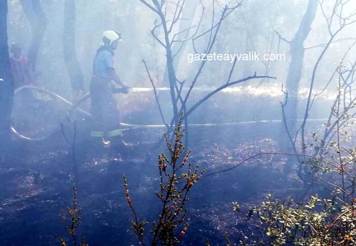 Alınan bilgiye göre; 15 Eylül Pazar günü saat 12.00’de Şeytan Sofrası yakınlarında yangın çıktı. Etkili rüzgâr nedeniyle kısa sürede yayılan yangına Ayvalık İtfaiye Grup Amirliği, 2 tanker, 1 ilk müdahale aracı ve 6 personel, Ayvalık Orman İşletme Şefliği 1arazos, 2 su tankeri ve 6 işçi ile müdahale etti.