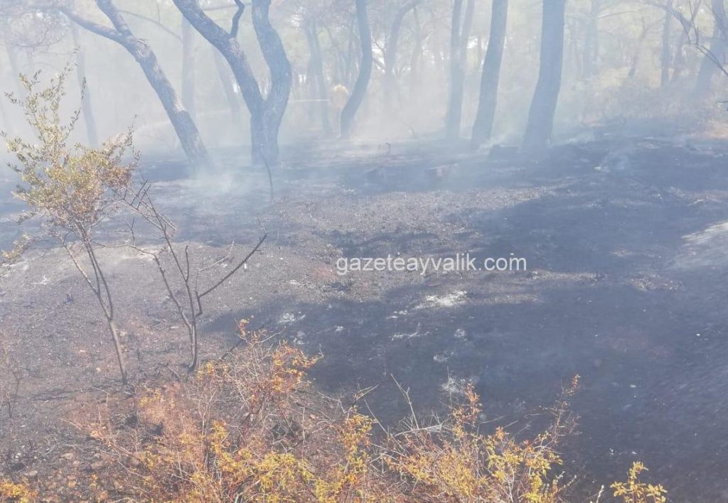 Ayvalık Orman İşletme Şefliği, örtü yangını şeklinde gerçekleşen yangının ne kadarlık alanı tahrip ettiğinin yapılacak ölçümden sonra netlik kazanacağını belirtirken, bölgede arıcılık yapanların arı kovanlarından bal almak yaktığı tütsü nedeniyle yangının çıktığı ve arıcıları oradan uzaklaşırken gördükleri yönünde görgü tanığı ifadesi olduğu öğrenildi. Yangının çıkış nedeni yapılacak araştırmadan sonra netlik kazanacak.