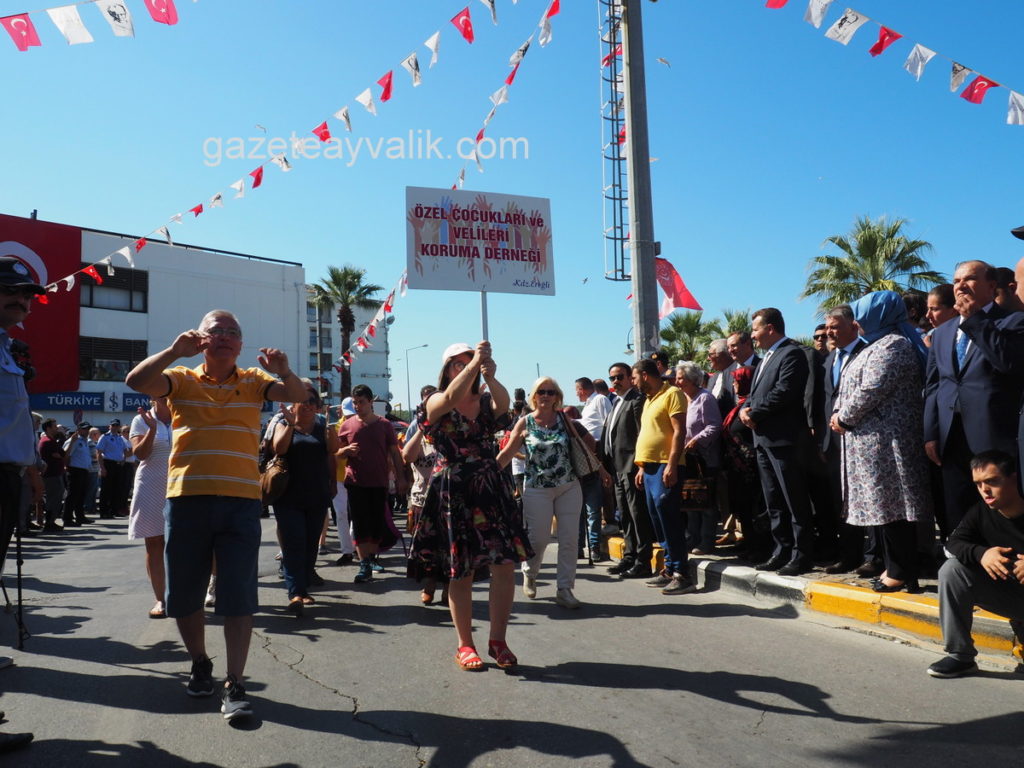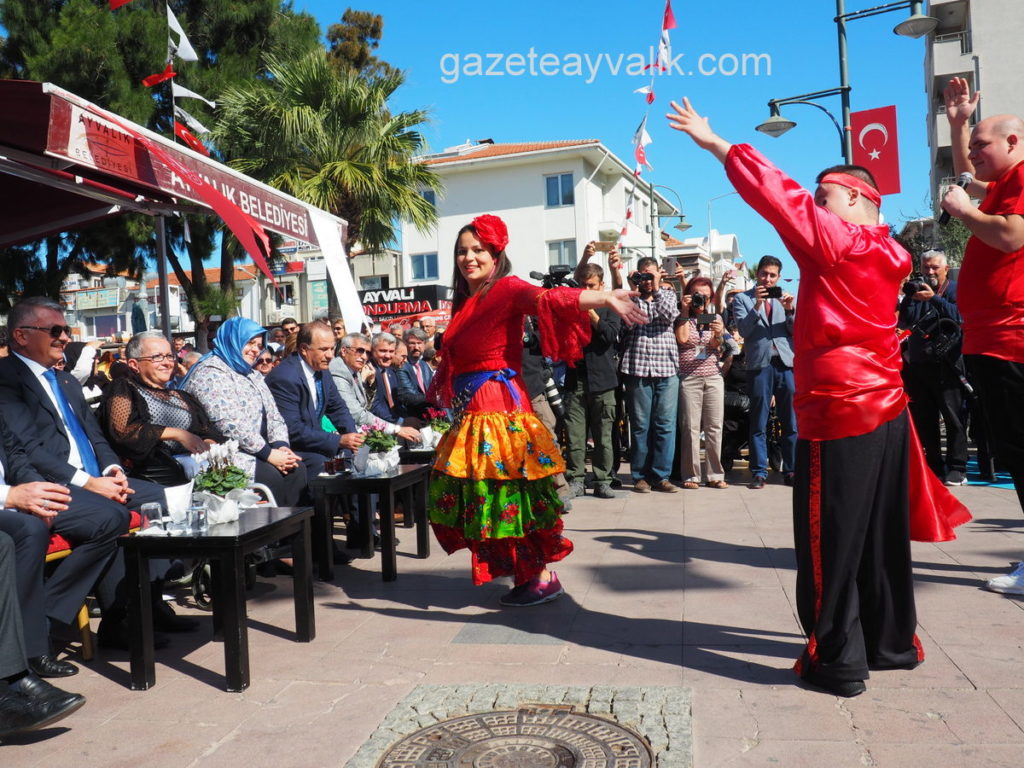 Saygı duruşu ve İstiklal Marşının okunmasıyla başlayan şenlikte, Ayvalık Belediyesi Özel Çocuklar Eğitim Evinin Roman havası gösterisi ilgiyle izlendi.