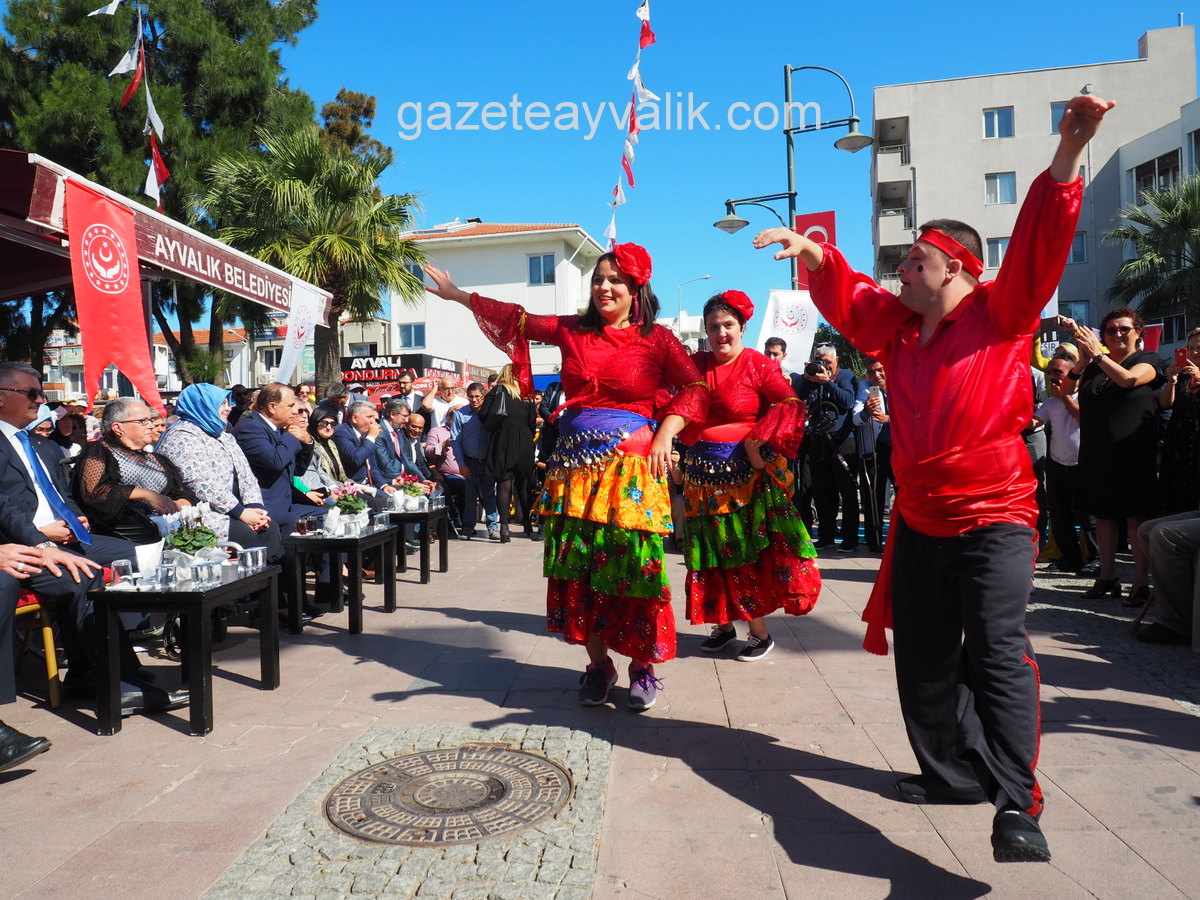 Saygı duruşu ve İstiklal Marşının okunmasıyla başlayan şenlikte, Ayvalık Belediyesi Özel Çocuklar Eğitim Evinin Roman havası gösterisi ilgiyle izlendi.