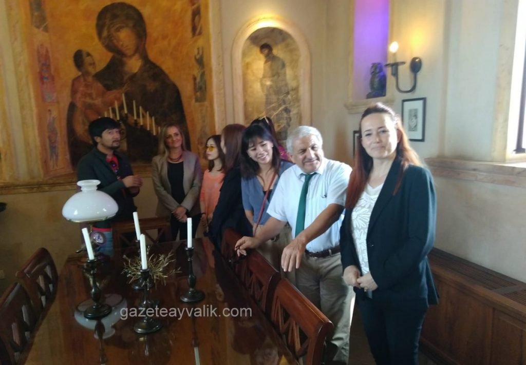 Çinli Tur Operatörleri Lı Quanıu, Yan Lanru, Ye Jıaqı ve Kai Yang, Bakanlık uzmanı Ezgi Canpolat, Balıkesir İl Kültür ve Turizm Müdürü Mustafa Çaltı, Ayvalık Turizm Danışma Büro Sorumlusu Yasemin Gençer, GMKA uzmanları Esra Kocabaş ve Ahmet Tuğrul Aydın, bir rehber ve çevirmen eşliğinde Ayvalık’ı gezerek incelemelerde bulundu. Edremit’te Perşembe akşamı düzenlenen toplantının ardından Ayvalık’a geçen heyet, Cuma günü Cunda Adası’nı gezdi. Adada, Sevim- Necdet Kent Kitaplığı, Rahmi M. Koç Müzesi ve Despot Evi Otelini ziyaret eden heyet Şeytan Sofrası ziyareti ile programın ilk bölümünü tamamladı. Çinli operatörlerin Cuma akşamı Sarımsaklıda düzenlenecek toplantıda ilçedeki turizm sektör temsilcileriyle bir araya geleceği öğrenildi. Operatörler Ayvalık’în doğal güzellikleri ve tarihi yapılarını çok beğendiklerini ifade etti.